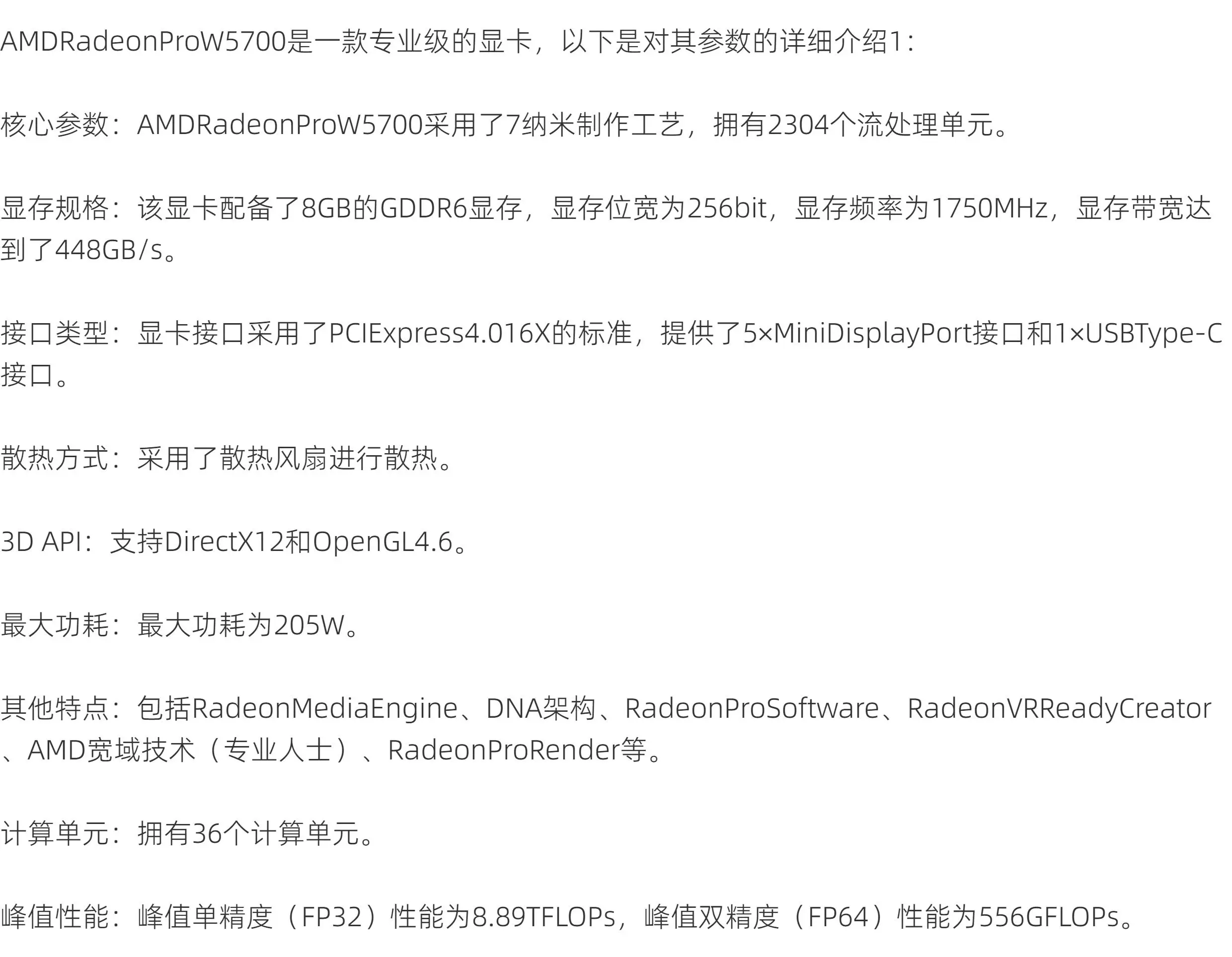 型号:AMD Radeon PRO W5700,显存 8GB GDDR6